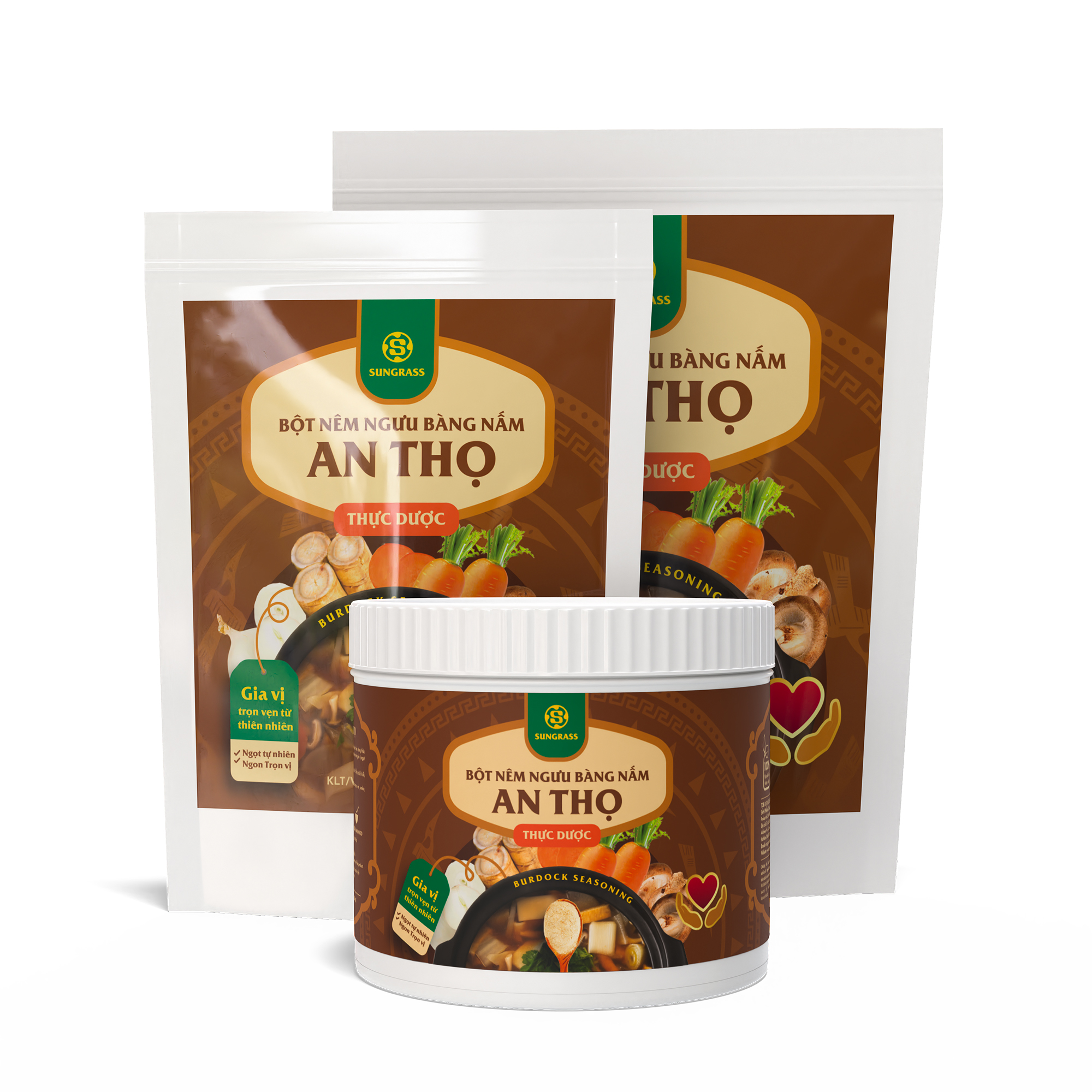 Bột nêm thiên nhiên với thành phần từ Củ Ngưu Bàng được làm dựa theo công thức dưỡng sinh và sử dụng muối biển giảm mặn của vùng biển xứ Nghệ, tạo nên món gia vị ngọt lành, đặc biệt tốt cho huyết áp và tim mạch.