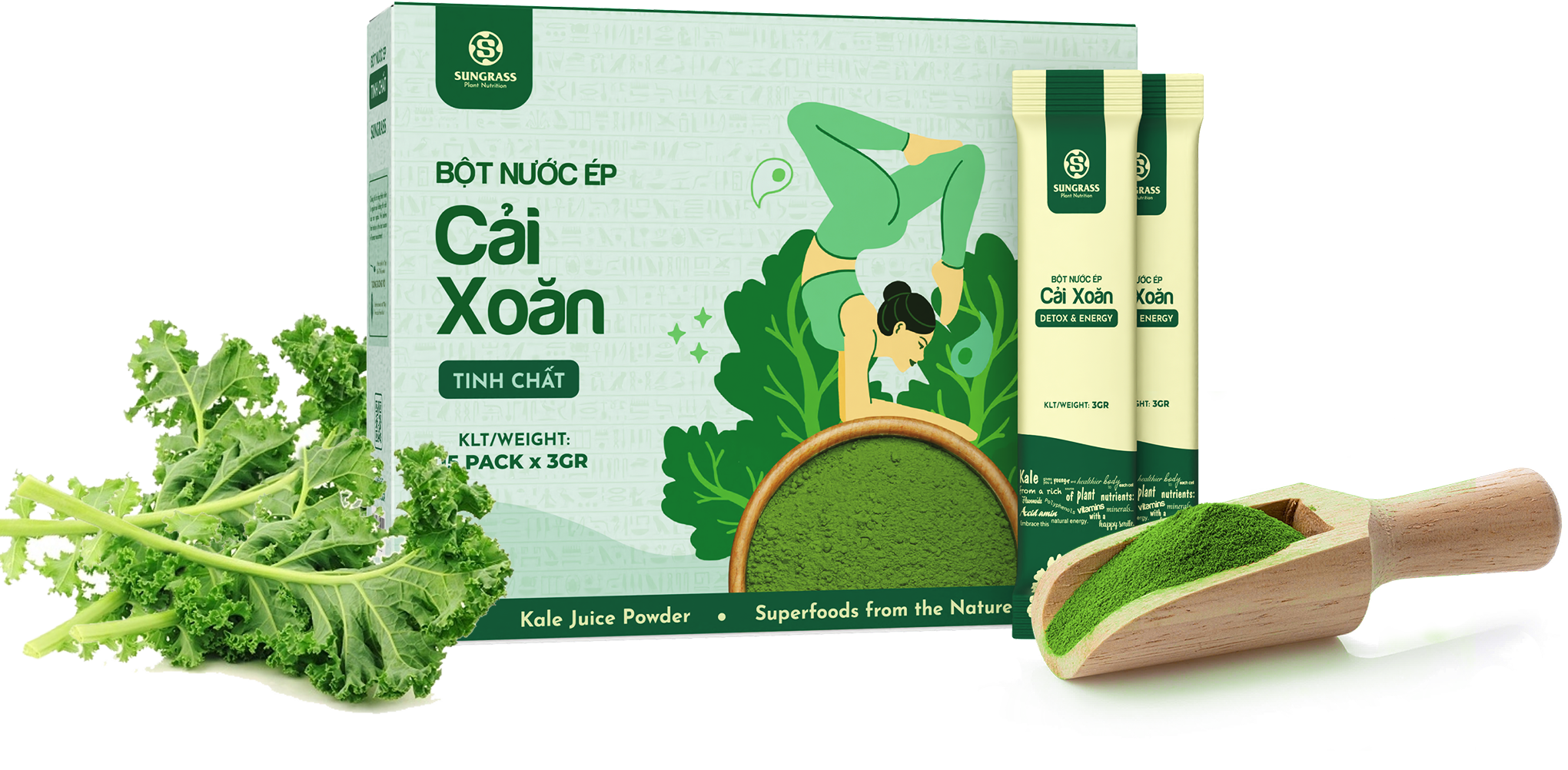 Nhưng không phải ai cũng dễ ăn cải xoăn sống vì vị đắng đặc trưng. Vì vậy, chúng tôi ép tươi cải xoăn và chuyển thành bột nước ép tiện lợi, giúp bạn tiếp nhận dưỡng chất nguyên bản chỉ trong vài giây – không cần nấu nướng, không cần ép.